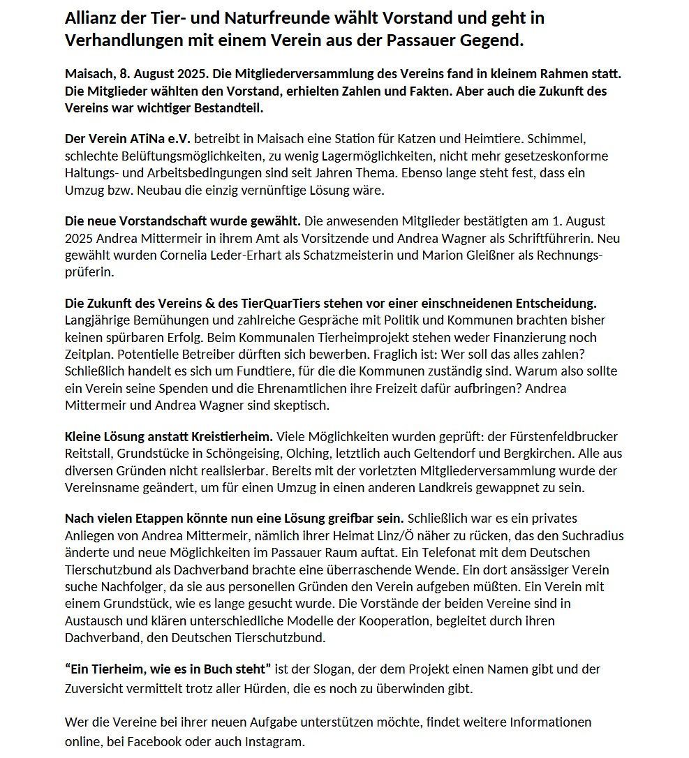 Wir als Verein sind im Rahmen unserer Möglichkeiten immer wieder eingesprungen. Es sind jedoch nicht die Tiere, die in Not sind, sondern deren Besitzer. Als Tierschutzverein sind wir folglich nicht der richtige Ansprechpartner und sehen ab sofort von jeglicher Unterstützung ab.