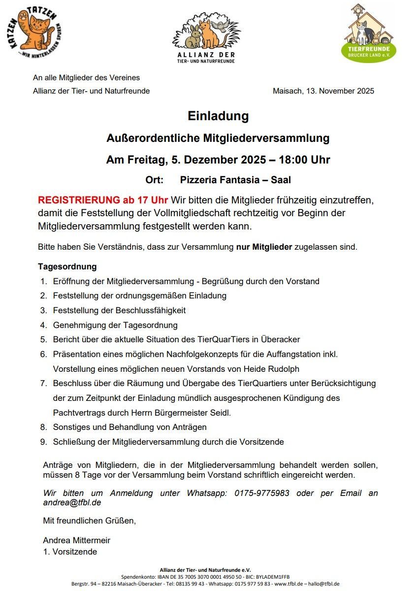 Der Tierschutzverein Fürstenfeldbruck und Umgebung e.V. hat eine Vereinbarung mit der Stadt und ist somit zur Aufnahme von Fundtieren verpflichtet.